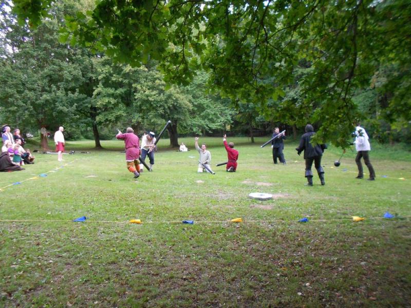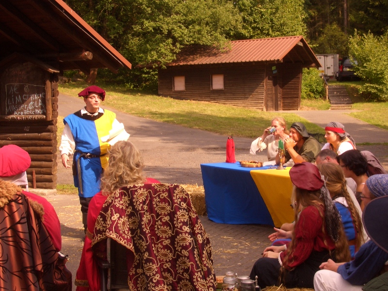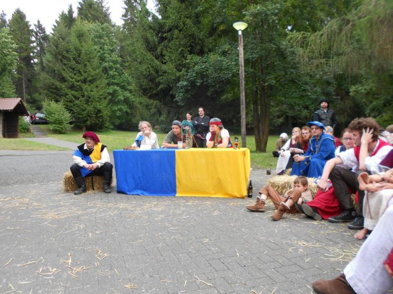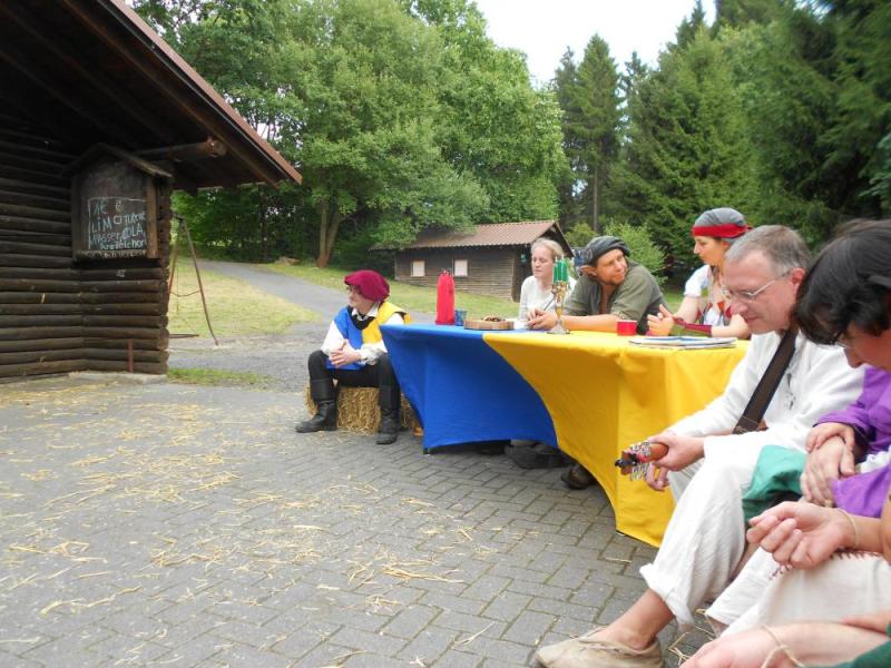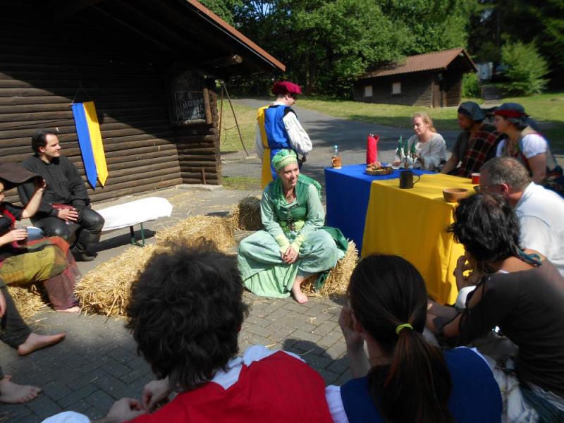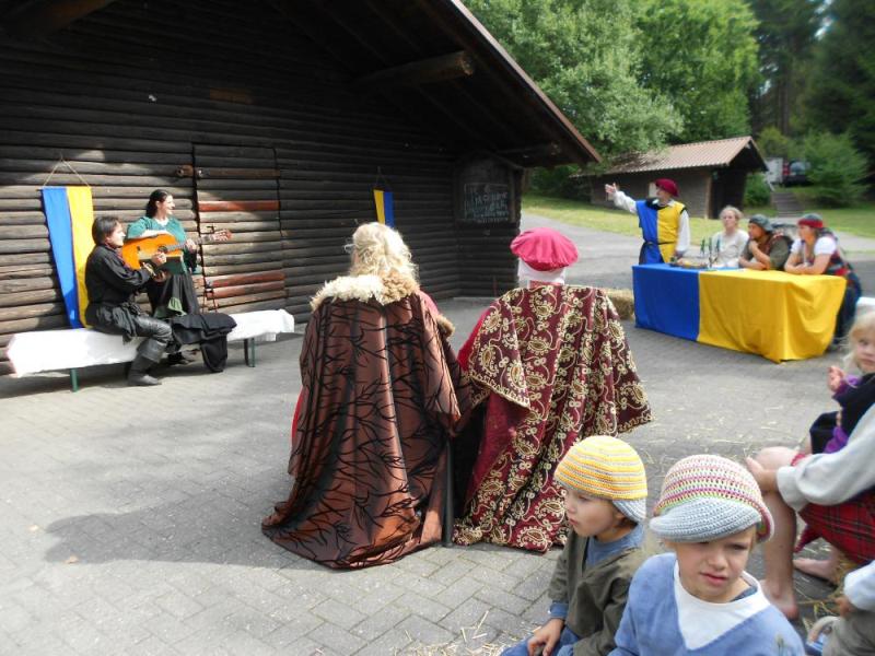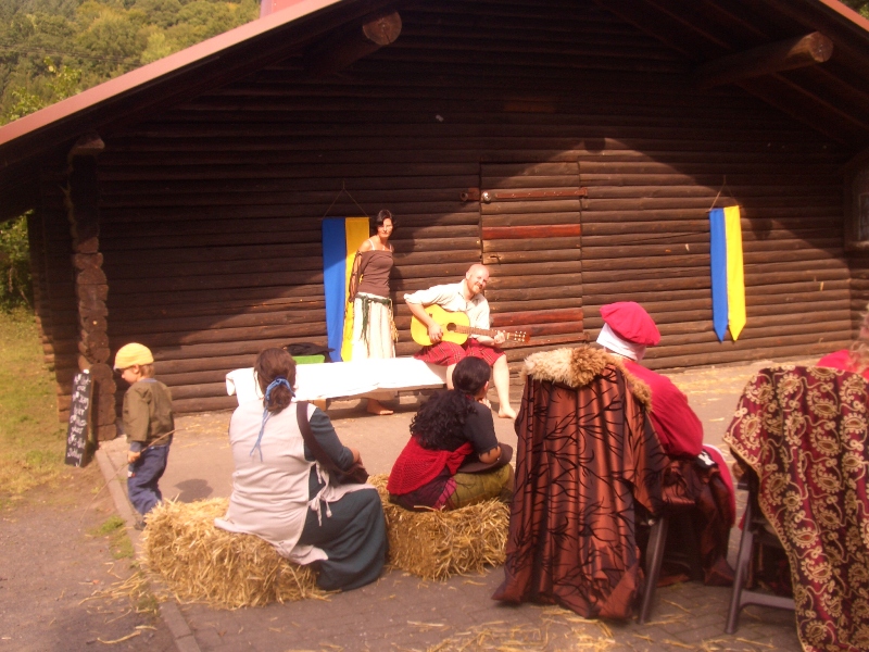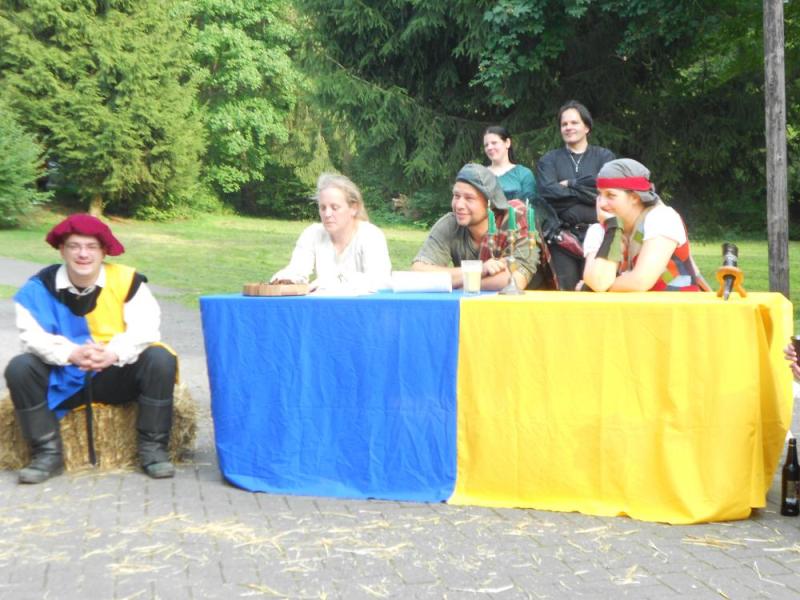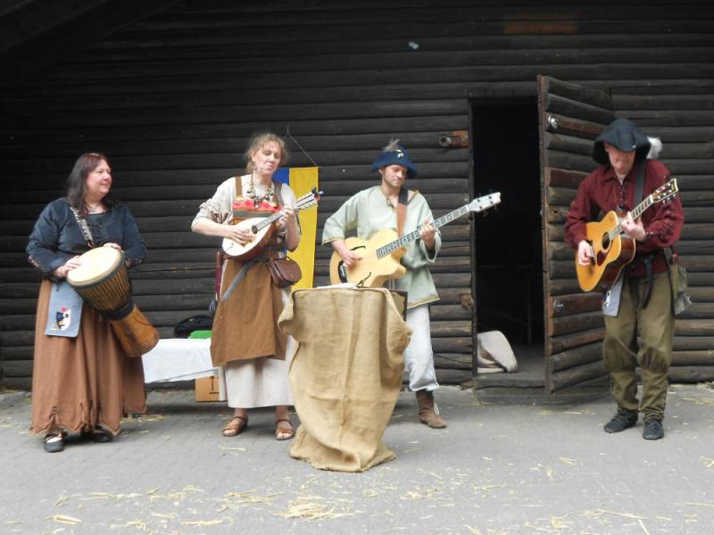 ![]() ![]() ![]() ![]() ![]() ![]() | Wir sind zurück von unserem ersten gemeinsamen Ambiente-Con, das wir als komplette Band besuchten! Ein wunderbares sonniges Wochenende mit Künstlern, Musikern, Interessierten und Gleichgesinnten in Maisonsous bei Montabaur. Nächtelang wurde in der Taverne Musik gemacht. Tagsüber sind auch wir in mehreren Wettbewerben gestartet. Wir sind dankbar für begeisterte Aufnahme und überaus glücklich in der Katagorie "Klang heiter" den ersten Platz gemacht zu haben. Wirkt anscheinend sehr überzeugend, wenn vier blöde Barden über "Vier Blöde Barden" singen. Viele Grüße an Melissa, Serena, Seamus, Lord und Lady Thalion und auch besonders an die Nordener-Schauspiel-Companie von denen wir gerne noch viel mehr gesehen und gehört hätten. Nächstes Jahr sind wir sehr gerne wieder dabei !!! |